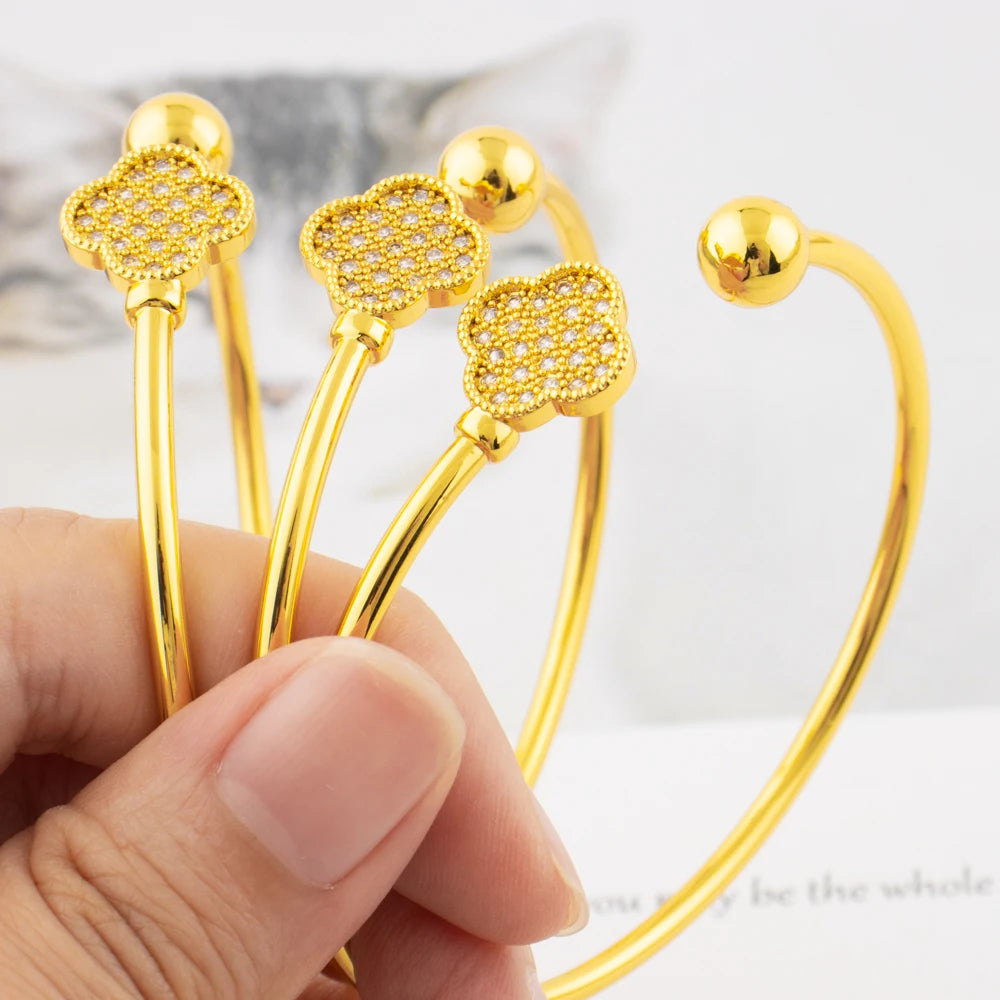 New Design Classic Luxury Stainless Steel Shiny Zircon Clover Bracelets Elegant Temperament For Women's Daily Wear Jewelry Gifts